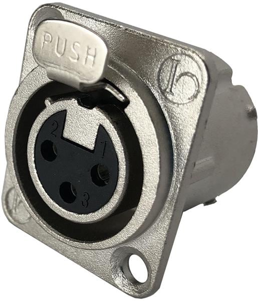 Io Audio Technologies IO-XLR3-F-JLX ຕົວເຊື່ອມຕໍ່ 3-ຂາ XLR, ຜູ້ຍິງ, ກອງນິເກວ, ຖ້ວຍບົດບາດ, ຕິດຕໍ່ເງິນ, ການປ້ອງກັນ RF | EMIN.COM.LA