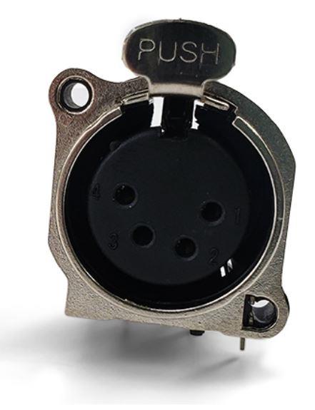 Io Audio Technologies IO-XLR4-F-BH ຕົວເຊື່ອມຕໍ່ 4-Pin XLR Chassis Connector, ຜູ້ຍິງ, ຢູ່ທາງຂ້າງ, ຂາດດິນ, ແຜ່ນຫນ້າເຫຼັກ | EMIN.COM.LA
