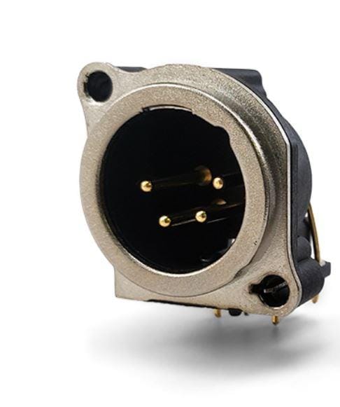Io Audio Technologies IO-XLR4-M-BH ຕົວເຊື່ອມຕໍ່ 4-Pin XLR Chassis Connector, ຜູ້ຊາຍ, ຢູ່ແຖວຮອງ, PCB, ຂາຍດິນ, ແຜ່ນຫນ້າເຫຼັກ | EMIN.COM.LA