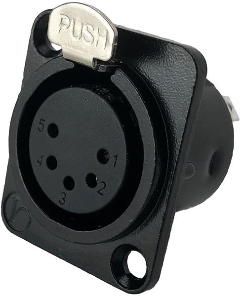 Io Audio Technologies IO-XLR5-F-BK-JL ຕົວເຊື່ອມສາຍສະເພາະ 5-Pin XLR, ຜູ້ຍິງ, ຕົວຮັບ, ກອງເຫຼັກສີດຳ, ຖ້ວຍບິນເຊື້ອມ, ຕິດຕໍ່ເງິນ