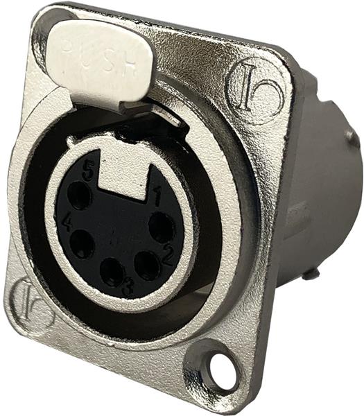 Io Audio Technologies IO-XLR5-F-JLX ຕົວເຊື່ອມຕໍ່ 5-Pin XLR, ຜູ້ຍິງ, ກອງນິເກວ, ຖ້ວຍບົດບາດ, ຕິດຕໍ່ເງິນ, ການປ້ອງກັນ RF | EMIN.COM.LA