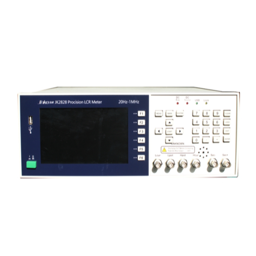 JK2828 high precision digital bridge is a multifunctional element parameter tester for various electronic components inspection. It features a 7-inch 800 x 480 color TFT LCD display, high speed and stability, with a frequency range of 20 Hz – 1 MHz and an accuracy of 0.05%. The JK2828 is used for incoming inspection of components, product line quality control, goods inspection, and laboratory measurement requirements.
