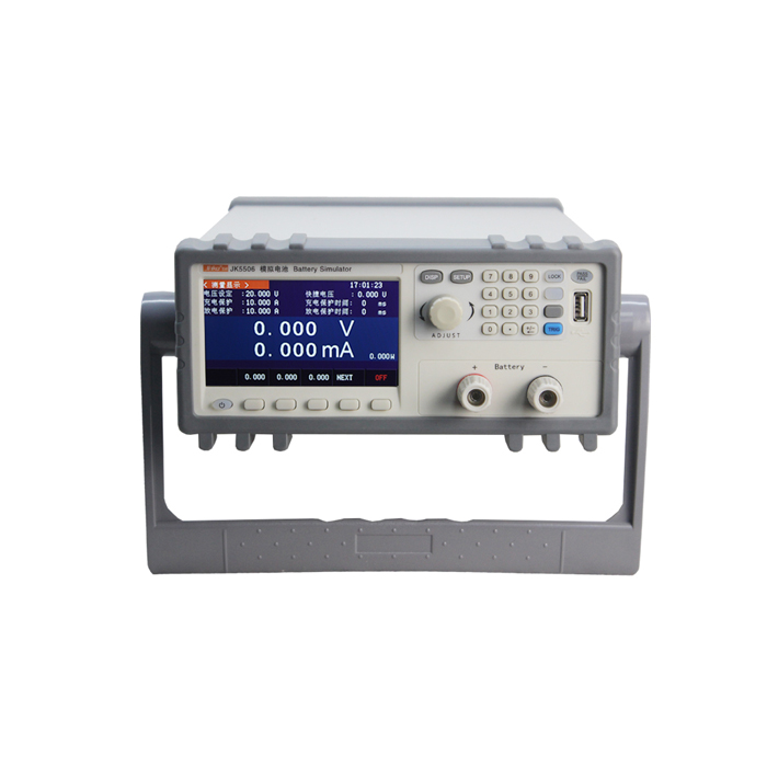 JK5506 Battery simulator has charging and discharging function. It can simulate 20V 10A battery with maximum charging 20V 10A and maximum discharging 20V 10A. It can also be used as a six-bit half-ammeter to test the static current of PCBA.The device is mainly used for the development and test of battery power supply products such as mobile power supply, Bluetooth headset, Bluetooth speaker, etc. or products with batteries. It can also be used as a general adjustable power supply.Its output voltage and input and output current protection values can be set. In PC communication mode, the dynamic voltage can be set continuously in a specified time, and the curve of voltage and current changing with time can be displayed intuitively.