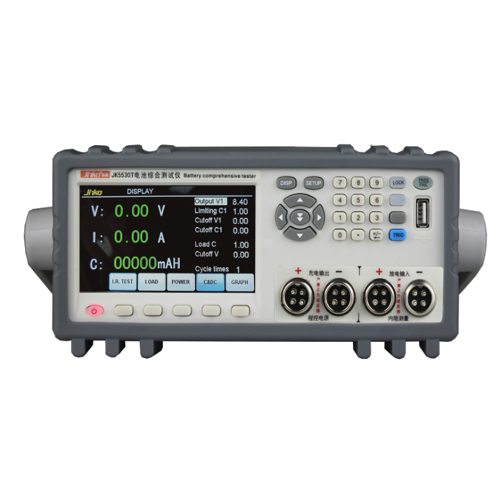 JK5530T battery performance comprehensive tester can test multiple types of lithium-ion batteries, Ni-MH batteries, and polymer batteries (groups) within 60V30A such as walkie-talkie batteries, mobile phone batteries, etc., such as: MP3/4 batteries, digital batteries, double-string battery packs, Mobile phone batteries, etc.; this testing equipment is widely used in battery manufacturers of walkie-talkie batteries, mobile phone batteries, digital batteries, etc.; it can meet the production testing of high, medium and low-end batteries by various manufacturers. It takes less than 1 second to test a battery; it is fast, full-featured, and high-precision; it is the most accurate type of instrument currently on the market.