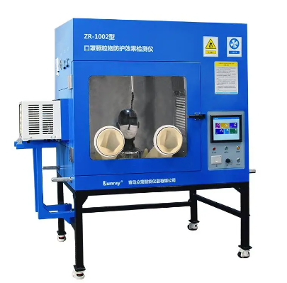 The ZR-1002 mask particle protection effect tester is to test the particle protection effect of masks by installing the national standard head from in the 500L self-cleaning test cabinet, then wear the mask on the head from, and import the mass median diameter (0.6 ± 0.050) μm, concentration is 20mg / m³ of NaCl aerosol or mass median diameter (0.3 ± 0.050) μm, concentration is 20mg /m³ of oily aerosol into the self-cleaning test chamber, and the head form simulate breathing in sinusoidal curve, using upstream and downstream photometers to detect the concentration of salt aerosol and oil aerosol before and after the mask to evaluate the particle protective effect of the mask.