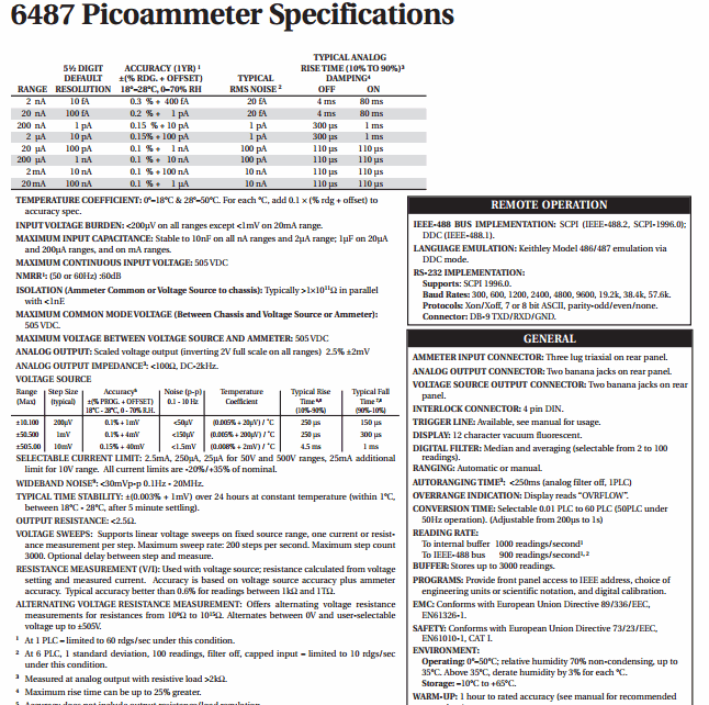 KEITHLEY 6487 Picoammeter/ແຫຼ່ງແຮງດັນ (20mA, 0.3%) | EMIN.COM.LA