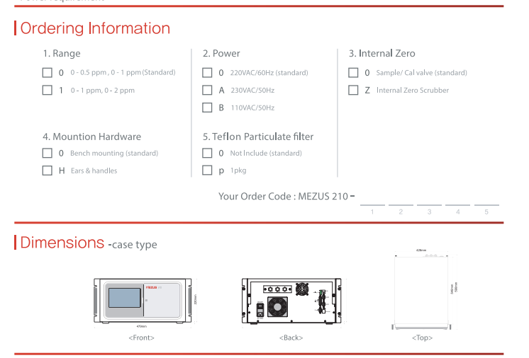 Power requirement: 220VAC/60Hz or 230VAC/50Hz
