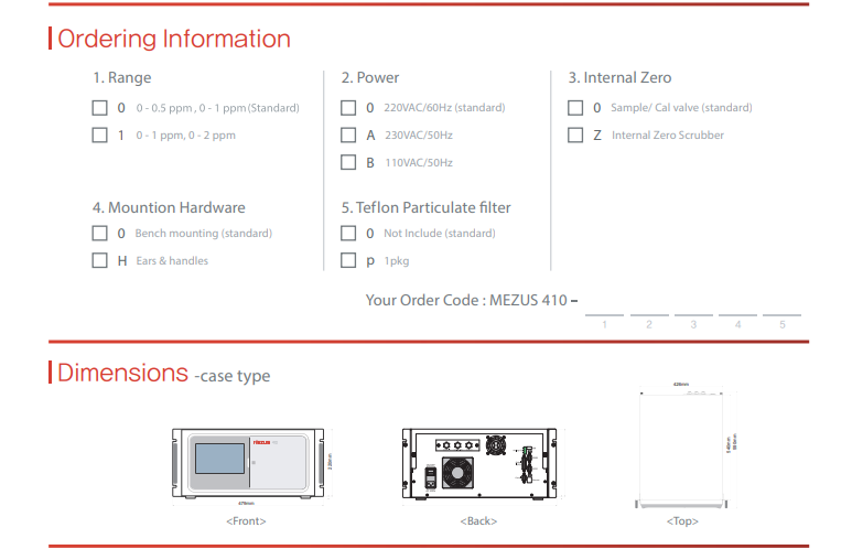 Ranges: 0 - 0.1, 0 - 0.5, 0 - 1ppm (selectable)