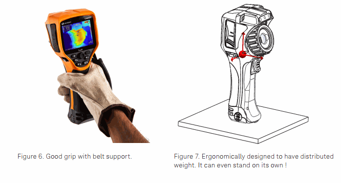 The ergonomically built TrueIR thermal imager is designed to let you carry out daily tasks comfortably. With its evenly distributed weight of only 746 grams and good stability, it fits comfortably in your palm without straining your hands, even when used over a long period of time. With a stable grip, it allows you to single-handedly capture more images and to work more efficiently.