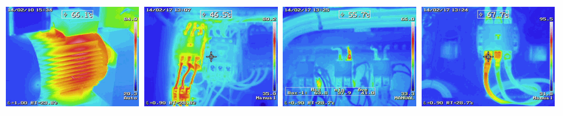 In predictive maintenance environments, thermal imager is used to perform mechanical and electrical inspections on motos, pumps, switch gears, circuit breakers, and the like. Hotspots as shown in the infrared (IR) images above indicate there may be a loose connection or a specific component is about to breakdown. These indications are warning signs which help to eliminate potential problem.