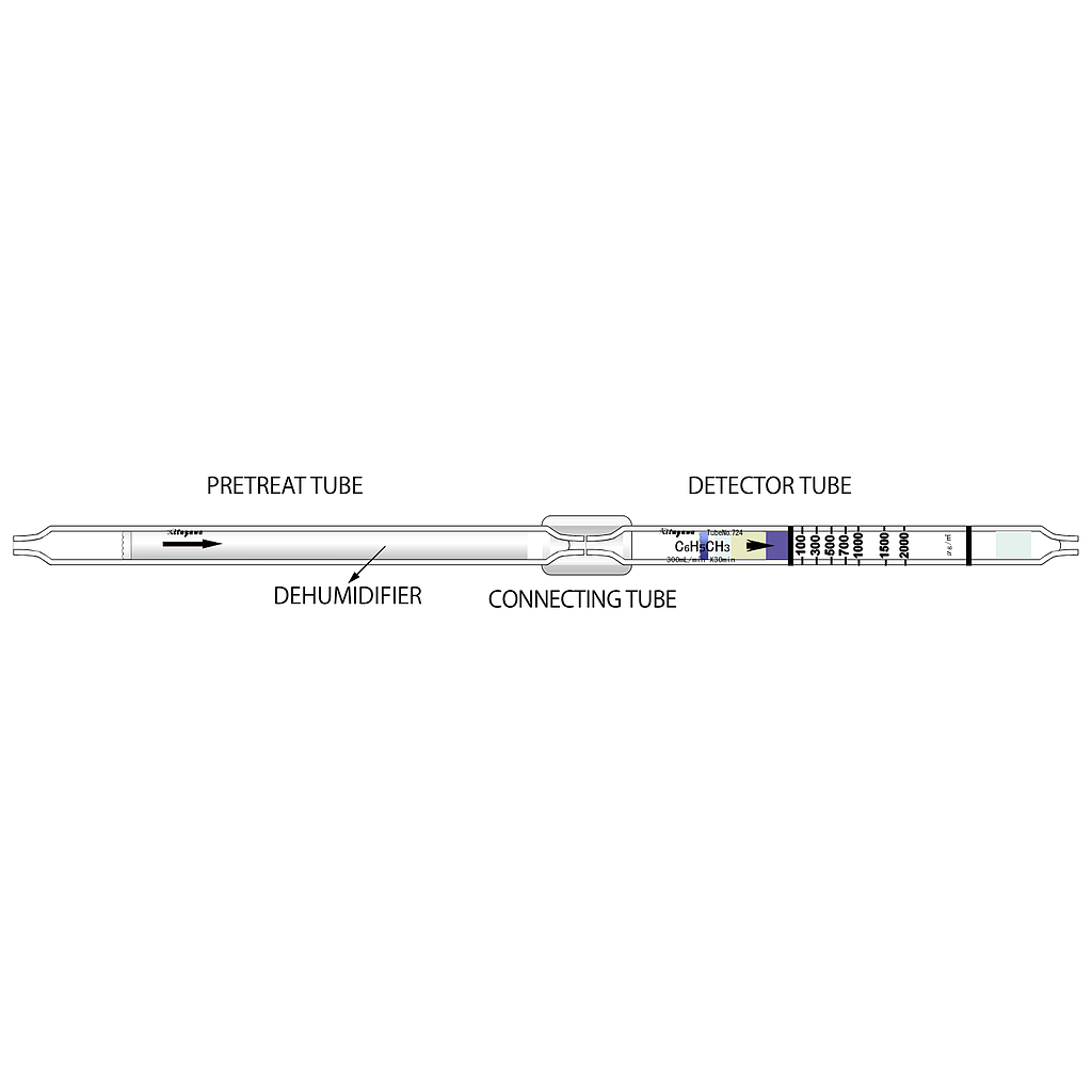 Reading: The tube scales are calibrated based on Toluene at sampling volume of 300mL/min×30min and Ethyl benzene concentration is determined by multiplying the tube reading by 0.85 at sampling volume of 300mL/min×30min
