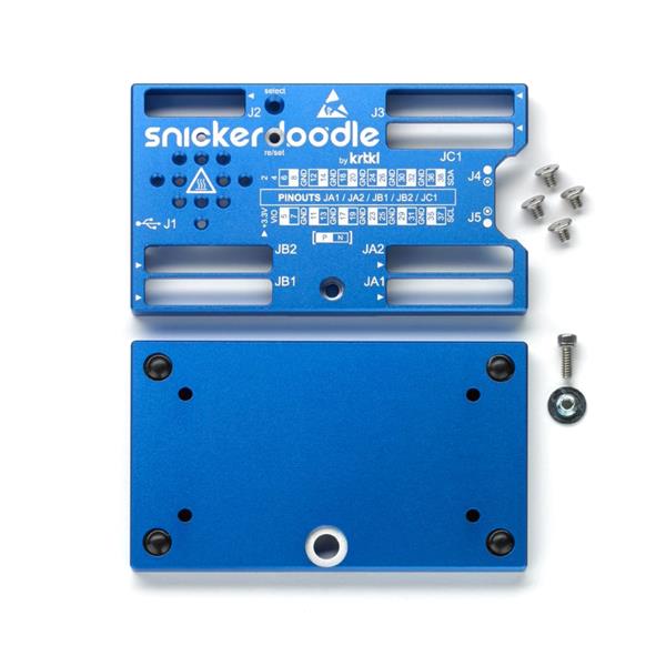 krtkl CS-SNICKERDOODLE-09 ເຄື່ອງມືເພີ່ມ snickerdoodle cookieJar Enclosure. ກອງອະລູມິເນຍທີ່ຜ່ານການຄັດສະເລີຍສໍາລັບຕໍ່ກັບ Connectors Up snickerdoodle, ການສະກັດແບບເລຊີ, ສີຟ້າ Anodized. ລວມມີ: 4x ນຸ່ມເຄື່ອງຈັກ SS ສໍາລັບຕິດຕັ້ງແຜ່ນ, ແຜ່ນດິນດຳເນີນການກະຕຸ້ນ / ການຕິດກັນ, ແຜ່ນຄວາມຮ້ອນຕິດກັນ, 4x ແຜ່ນຕິດກັນ-b