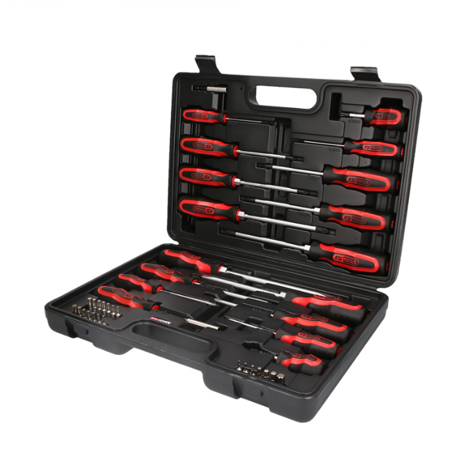 06 flathead screwdrivers (2 edges): 3mm x 155mm; 4mm x 180mm; 5.5mm x 205mm; 6.5mm x 230mm; 8mm x 265mm; 10mm x 315mm