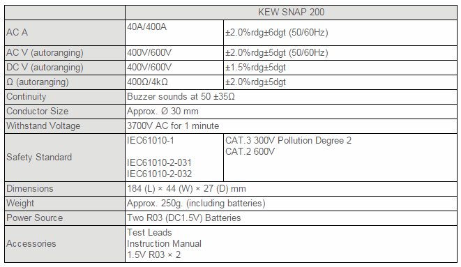 KYORITSU KEWSNAP200 AC Clamp Meter (AC 400A) | EMIN.COM.LA