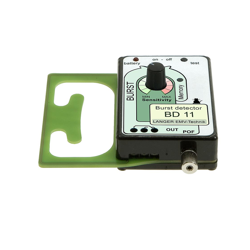 The BD 11 is designed for the detection of a burst-or ESD current pulse within a cable. It facilitates the finding the causes of sporadic errors within the system. The burst detector is small and handy. It is highly sensitive and steplessly variable.