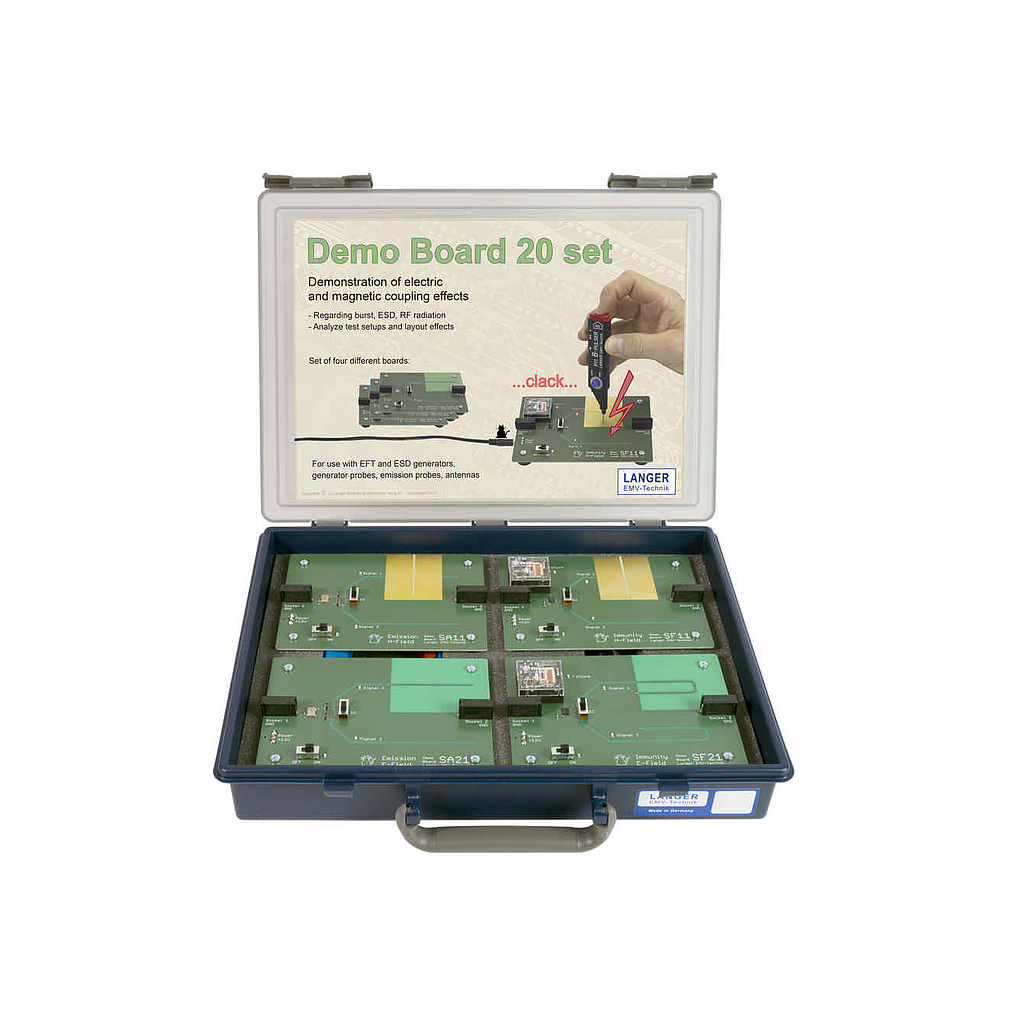 The Demo Boards of the DB 20 set are for the demonstration of immunity and interference emission phenomena.