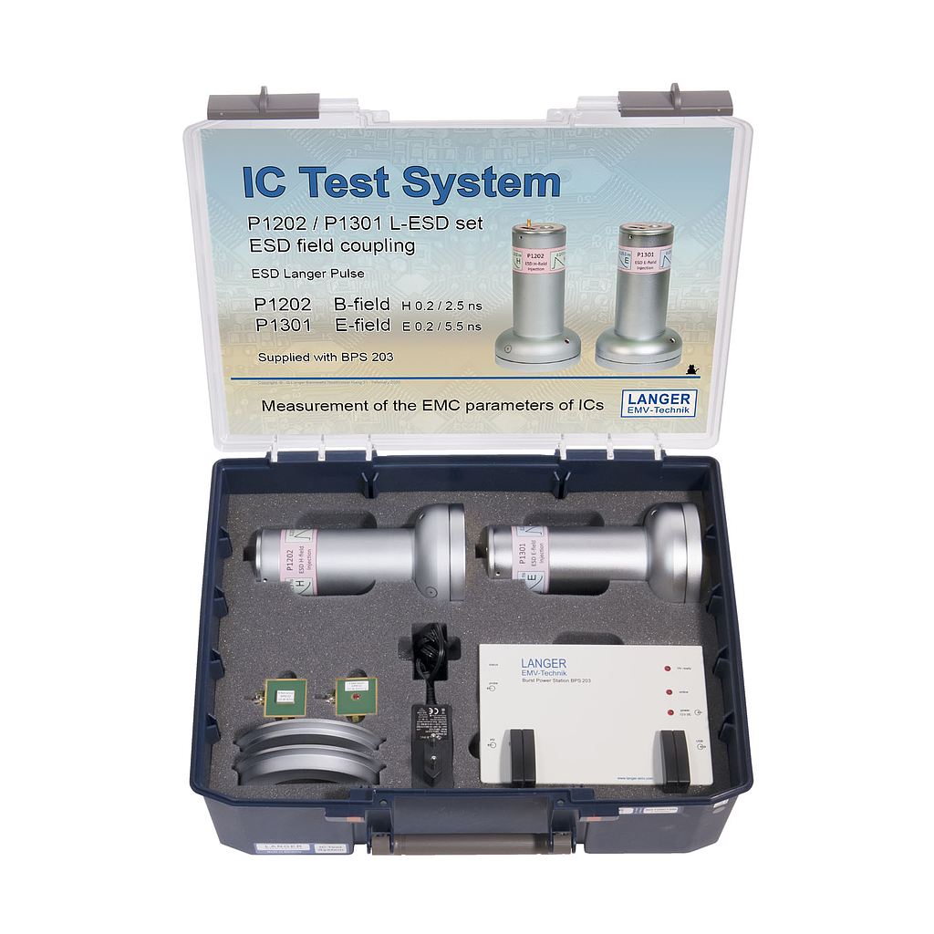 The field sources, which are included in the probe set field coupling 200 ps Langer ESD, generate very fast electric and magnetic ESD pulse fields. With these fields, ICs are defined and reproducibly pulsed to determine their immunity against ESD fields.