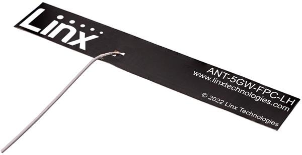 Linx Technologies - TE Connectivity ANT-5GW-FPC-LH200UF ເຄື່ອງຮັບສະຫນອງຍືນຍາວ 5G/4G Cellular GHz FPC antenna, 120x20mm, orthogonal cable egress, 200mm cable, UFL
