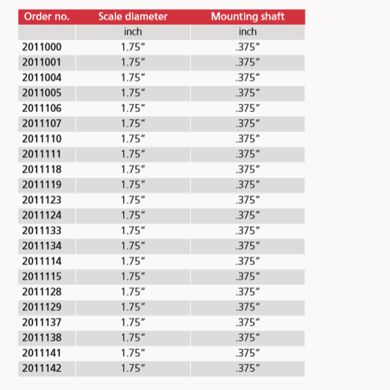• Optional Dials: balanced dial with + on left; continuous clockwise; continuous counterclockwise (Order by part number and specify dial style desired)