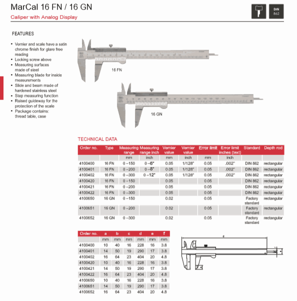Mahr 4100401 Caliper ດ້ວຍຈໍສະແດງຜົນແບບອະນາລັອກ (16FN, 0-200mm) | EMIN.COM.LA