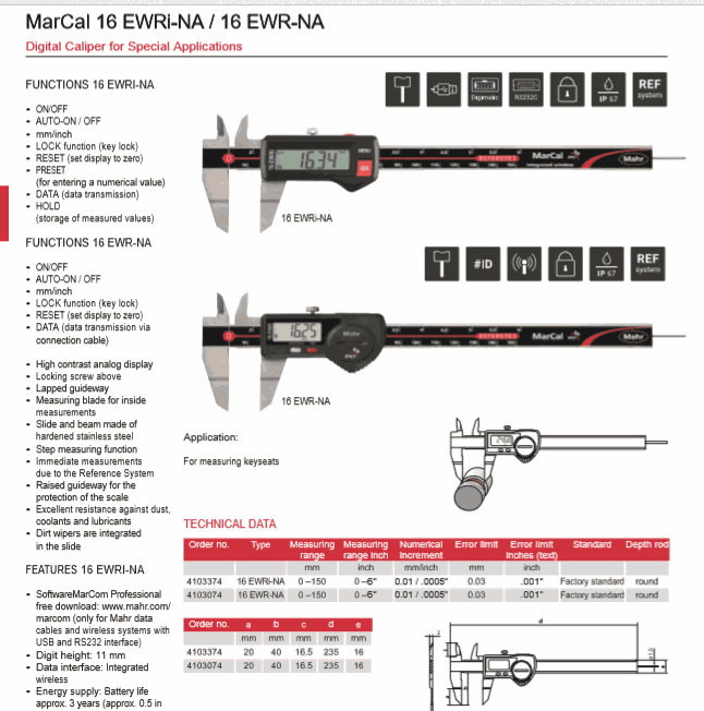 Mahr 4103074 Digital Caliper ສໍາລັບຄໍາຮ້ອງສະຫມັກພິເສດ (16 EWR-NA,0-150mm) | EMIN.COM.LA