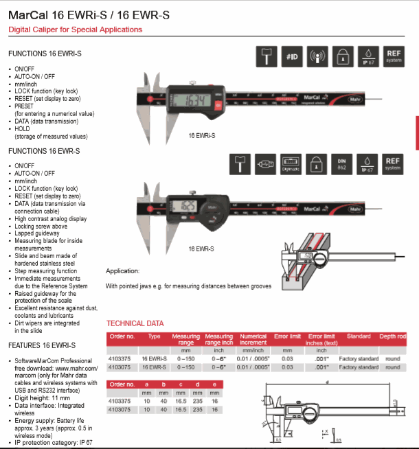Mahr 4103075 Digital Caliper ສໍາລັບຄໍາຮ້ອງສະຫມັກພິເສດ (16 EWR-S, 0-150mm) | EMIN.COM.LA