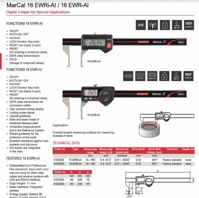 Mahr 4103080 Digital Caliper ສໍາລັບຄໍາຮ້ອງສະຫມັກພິເສດ (16 EWR-AI, 10-160mm) | EMIN.COM.LA