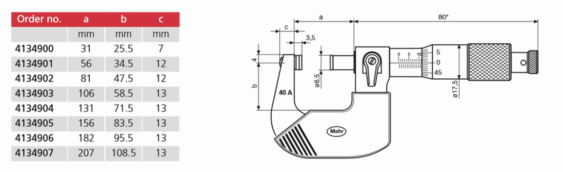 Mahr 4134900 ໄມໂຄມິເຕີ (40A, 0-1") | EMIN.COM.LA