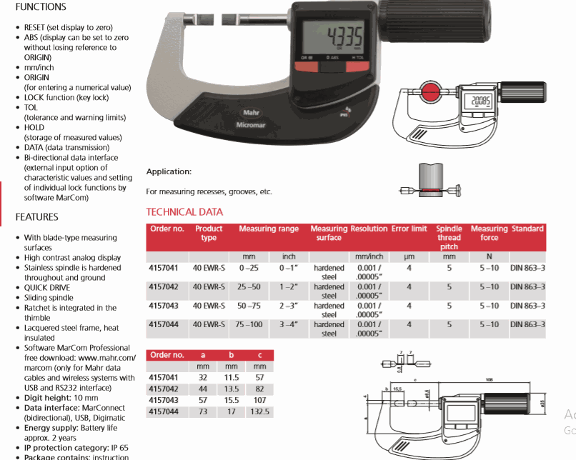Mahr 4157043 ໄມໂຄມິເຕີດິຈິຕອນ (40 EWR-S, 50-75mm/2-3") | EMIN.COM.LA