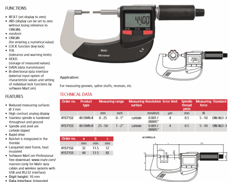Mahr 4157133 ໄມໂຄມິເຕີດິຈິຕອນ (40 EWRi-B, 25-50mm/1-2") | EMIN.COM.LA