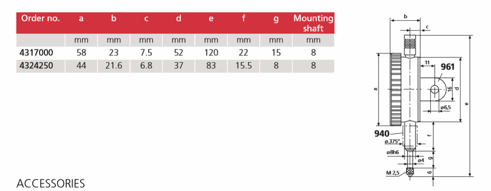 Measuring force incoming measuring pin N: 0.9 – 1.1