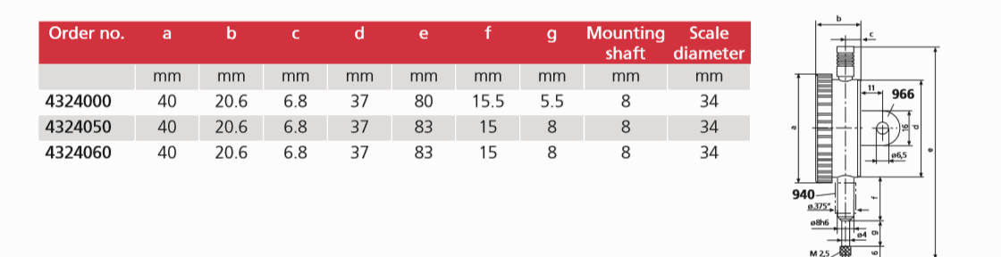 Measuring force incoming measuring pin N: 0.7 – 1.1