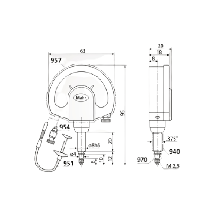 Mahr 4335905KAL ເຄື່ອງປຽບທຽບ Dial ກົນຈັກ (1002 ZT, ± .0010", IP54) | EMIN.COM.LA