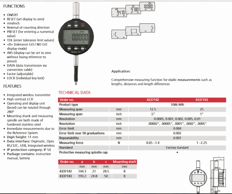 Resolution: 0.0005, 0.001, 0.002, 0.005, 0.01mm/.00002”, .00005”, .0001”, .0002”, .0005”
