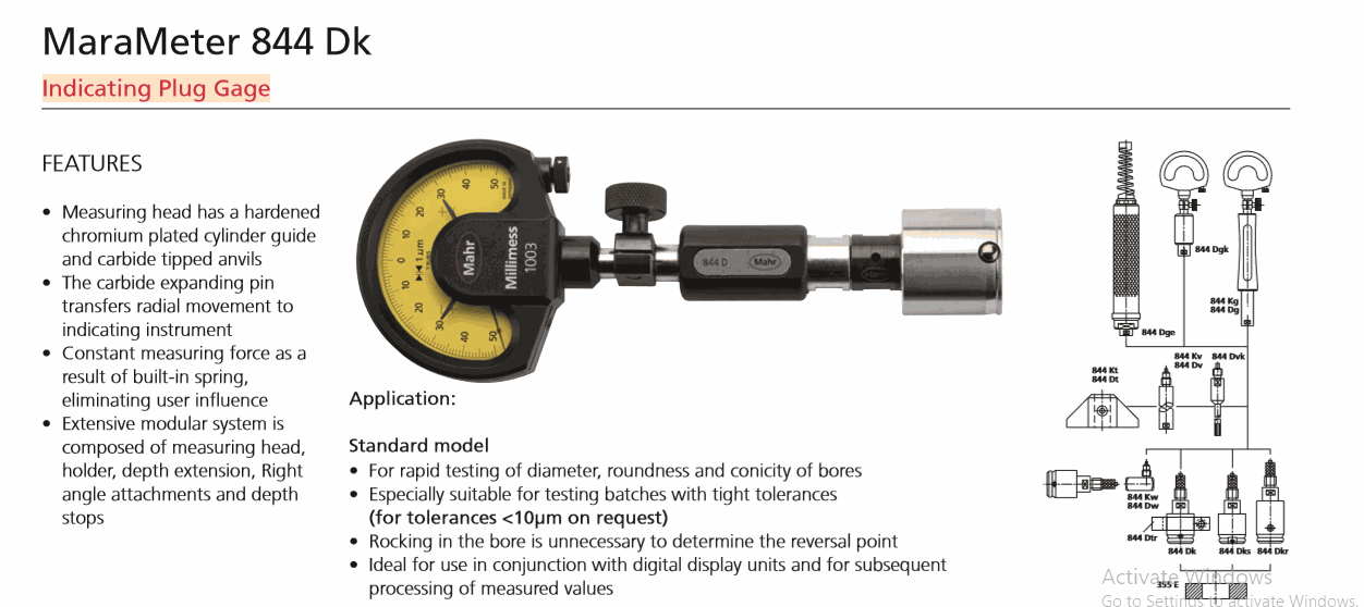 M6 x 0.75 Standard measuring instrument holder, type 844 Kg