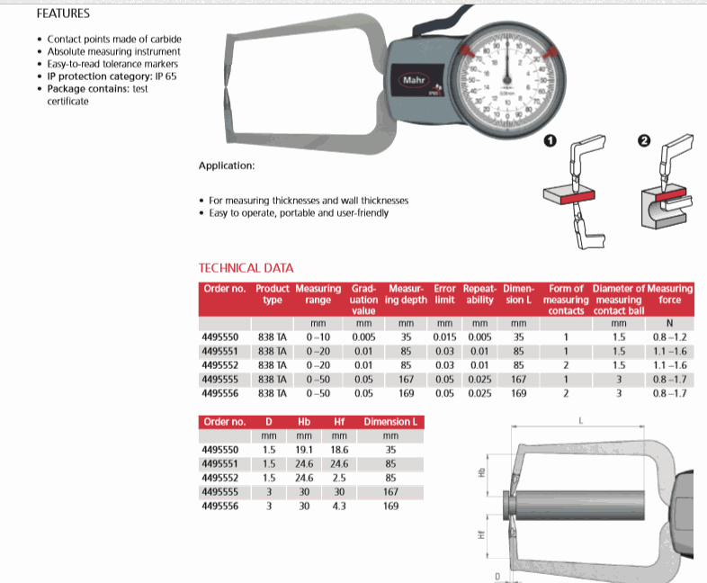 Mahr 4495551 Gage ສໍາລັບການວັດແທກພາຍນອກ (838 TA, 0 – 20mm, 0.01mm) | EMIN.COM.LA
