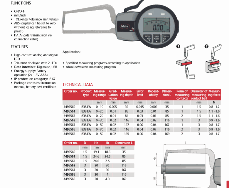 Mahr 4495563 Gage ເອເລັກໂຕຣນິກສໍາລັບການວັດແທກພາຍນອກ (838 EA, 0 – 30mm, 0.02mm) | EMIN.COM.LA