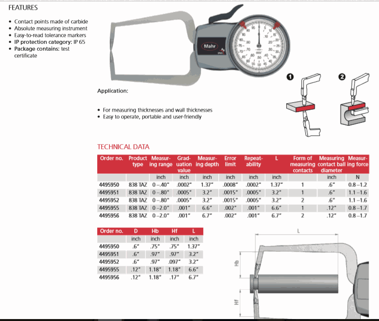 Mahr 4495950 Gage ສໍາລັບການວັດແທກພາຍນອກ (838 TAZ, 0 – .40”, .0002’’, IP65) | EMIN.COM.LA