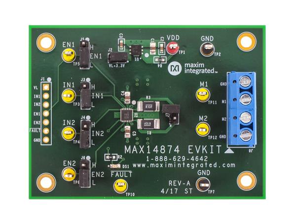Maxim Integrated MAX14874EVKIT# ບັດຄວບຄຸມແລະຂັບເຄື່ອງມອຕເຕ້ລ/ການເຄື່ອນໄຫວ Evkit ສໍາລັບ 4.5-36V 2.5A ສອງທາງ Relay/Valve | EMIN.COM.LA