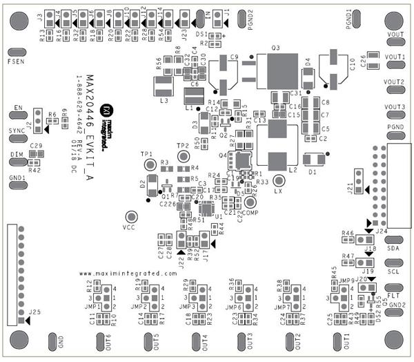 Maxim Integrated MAX20446EVKIT# ຊຸດການປະເມີນ Evaluation Kit ສໍາລັບລົດຍົນ 6x120mA Hi | EMIN.COM.LA