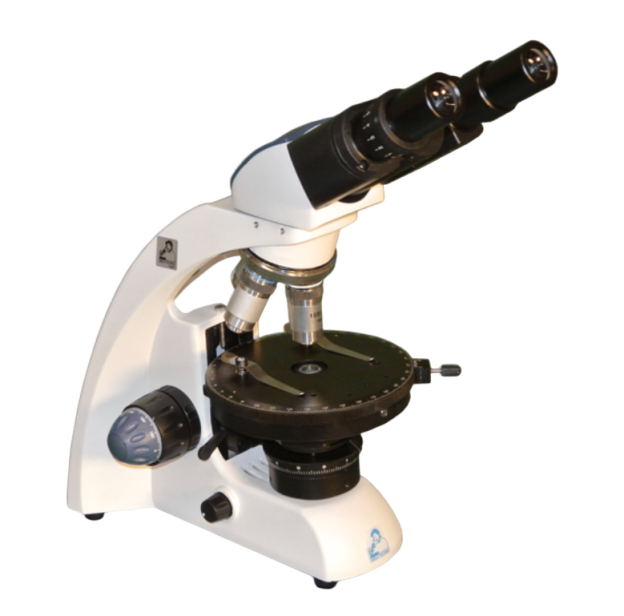 Analyzer is fitted in a slider and is located under the head. A swing-out polarizer fits on the light collector lens and is 360° graduations rotatable