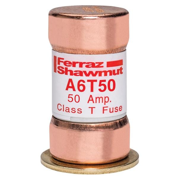 Mersen A6T50 ຟິວ Fuse, ລາຍການ Class T, ການດຳເນີນງານໄວ, 200kA AC, 100kA DC, 600VAC/300VDC, 50A | EMIN.COM.LA