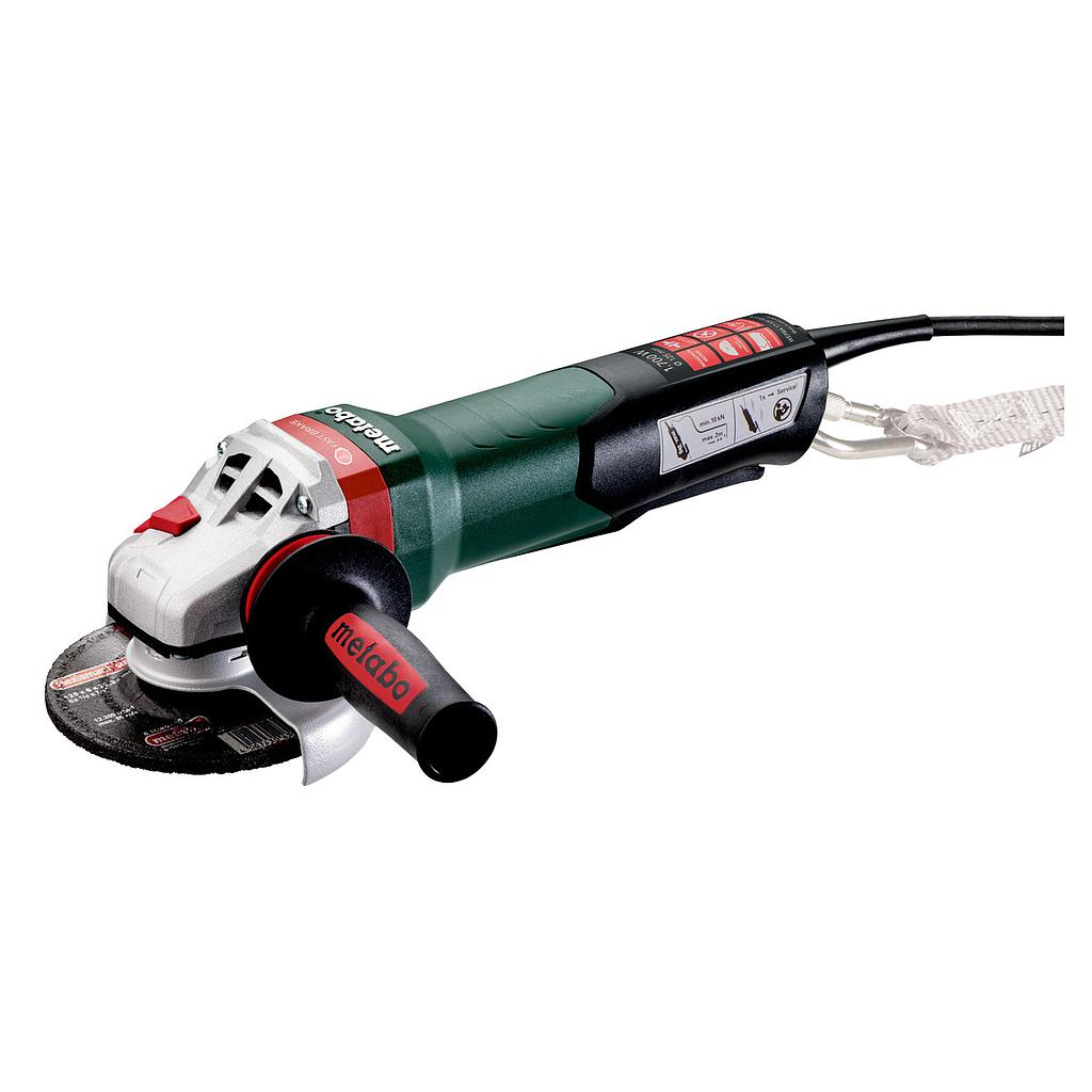 Steel ring to accommodate the carabiner secures the angle grinder against falling when working at great heights