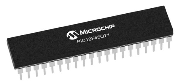 Microchip Technology PIC18F45Q71-E/P 8-bit Microcontrollers - MCU 32KB Flash, 2KB RAM, 2x OPA, 12-bit differential ADCC with computation, 8/10-bit DACs, 2 AC, APM, Virtual Port, PWM, CCP, CWG, HLT, WWDT, SCAN/CRC, ZCD, PPS, USART, SPI/I2C, IDLE/DOZE/PMD