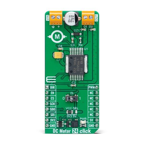 Mikroe MIKROE-5537 ເຄື່ອງມືພັດທະນາ IC ການຈັດການພະລັງງານ DC Motor 24 Click | EMIN.COM.LA