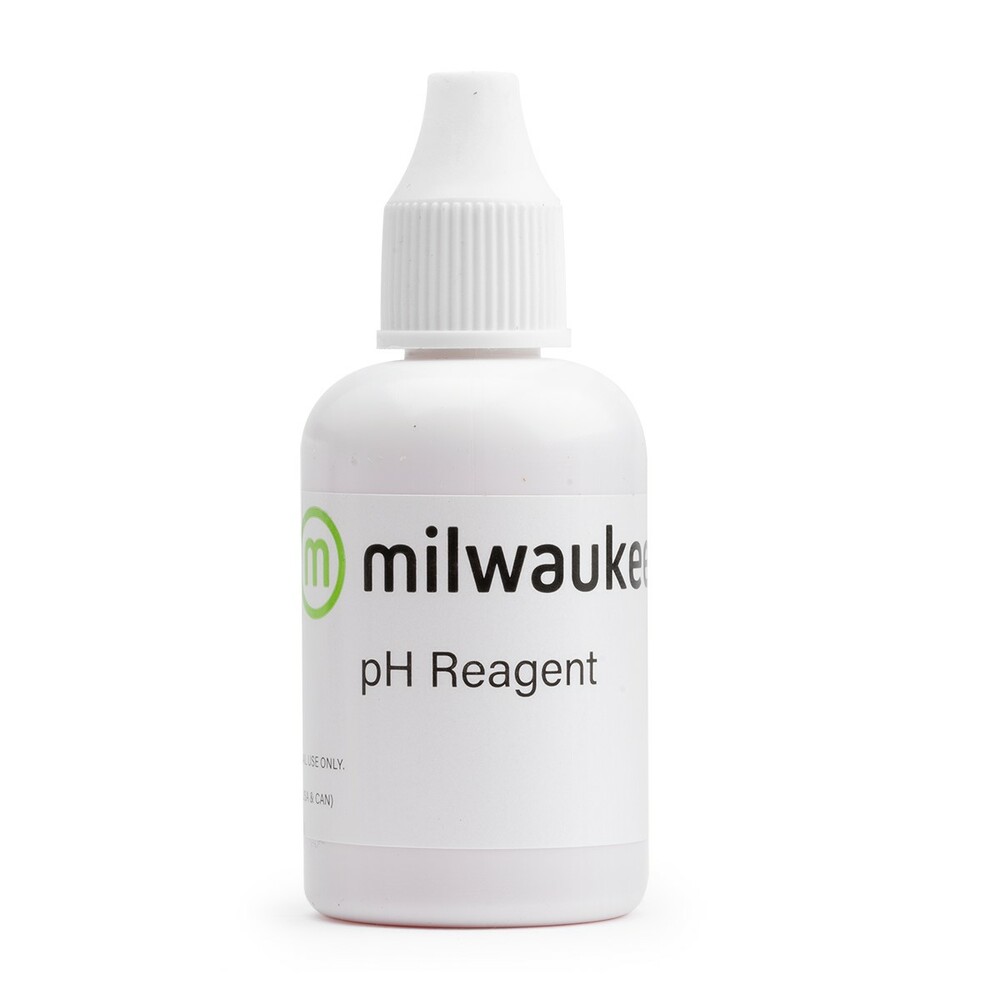The MI509-100 pH liquid reagent kit includes high-quality reagents that are ready-to-use with Milwaukee's pH, Free & Total Chlorine photometer MI411. The reagents and the meter use the adaptation of USEPA Method 330.5 and Standard Method 4500- CL G & adaptation of the phenol red method. Simply add the reagent to the sample, wait for the reaction to take place and the photometer determines the concentration based on the color. The reagents are designed for use with samples that have an expected range of 6.5 to 8.00 pH.