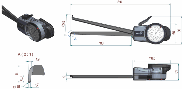 MITUTOYO 209-901 ເຄື່ອງວັດ Dial Caliper ພາຍໃນ (15-65mm, 0,05mm) | EMIN.COM.LA