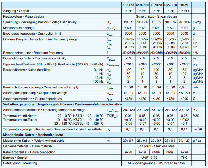 High Sensitivity Accelerometers KS77C10