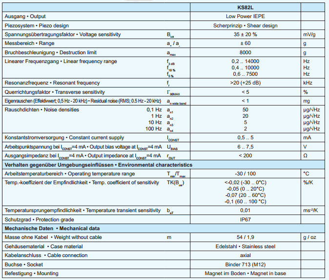 MMF KS82L ເຄື່ອງວັດແທກຄວາມອ່ອນໄຫວສູງ (35mV/g, ±60 g, 14000Hz) | EMIN.COM.LA