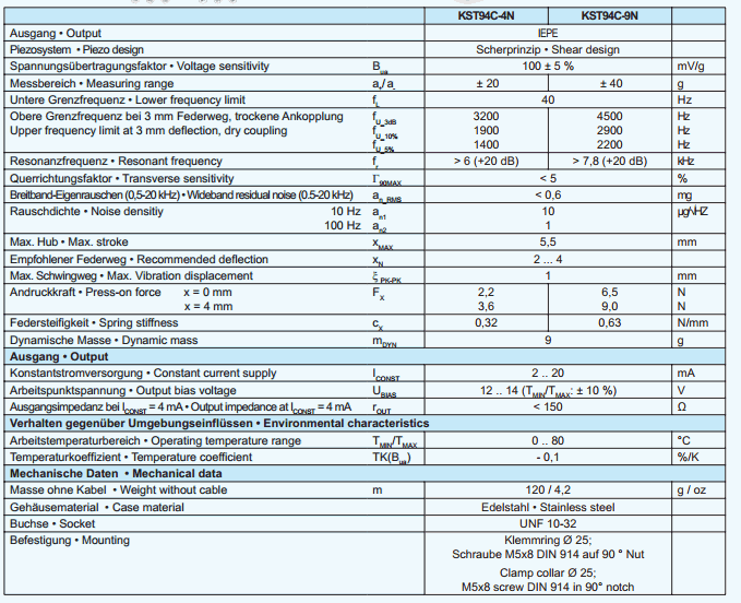 MMF KST94C-4N ເຄື່ອງວັດແທກຄວາມອ່ອນໄຫວສູງ (100mV/g, ±20 g, 3200Hz, 3.6N) | EMIN.COM.LA